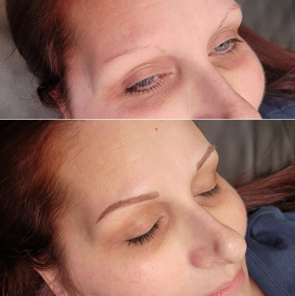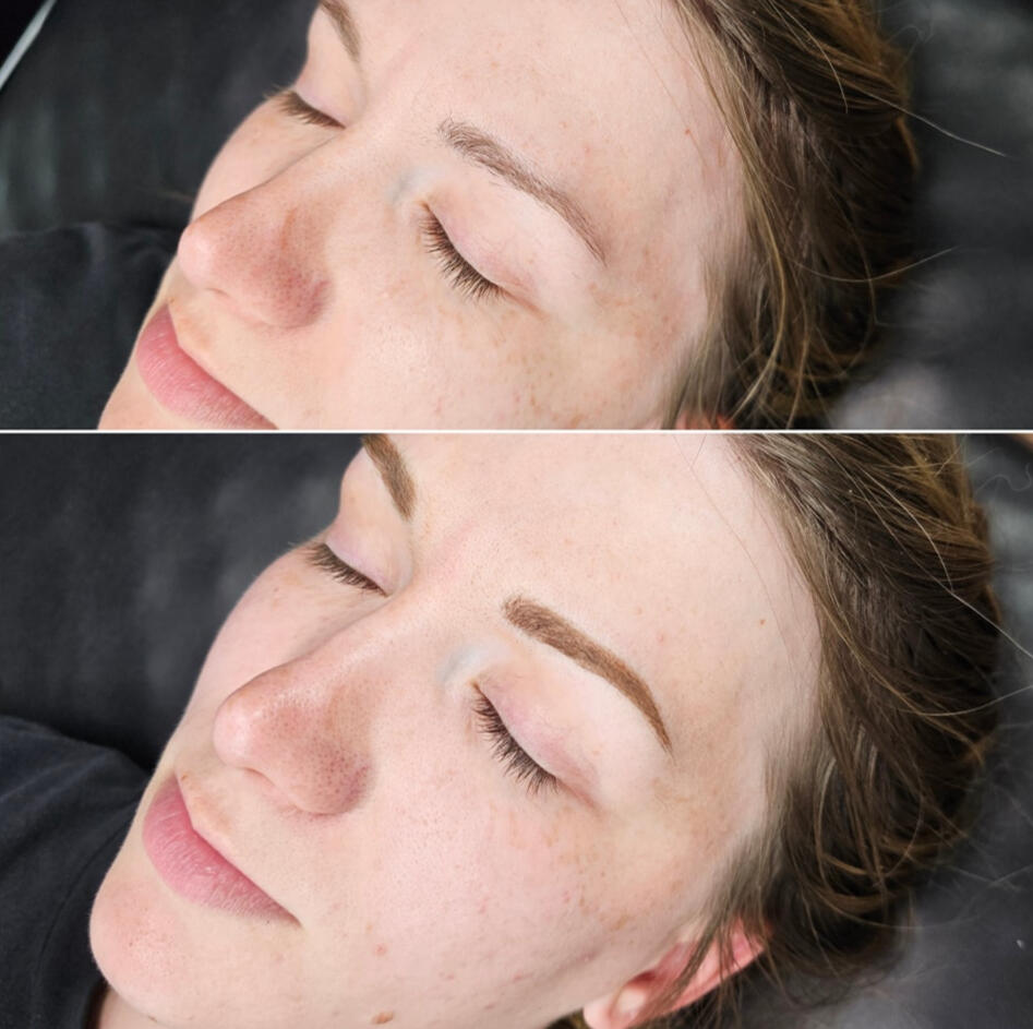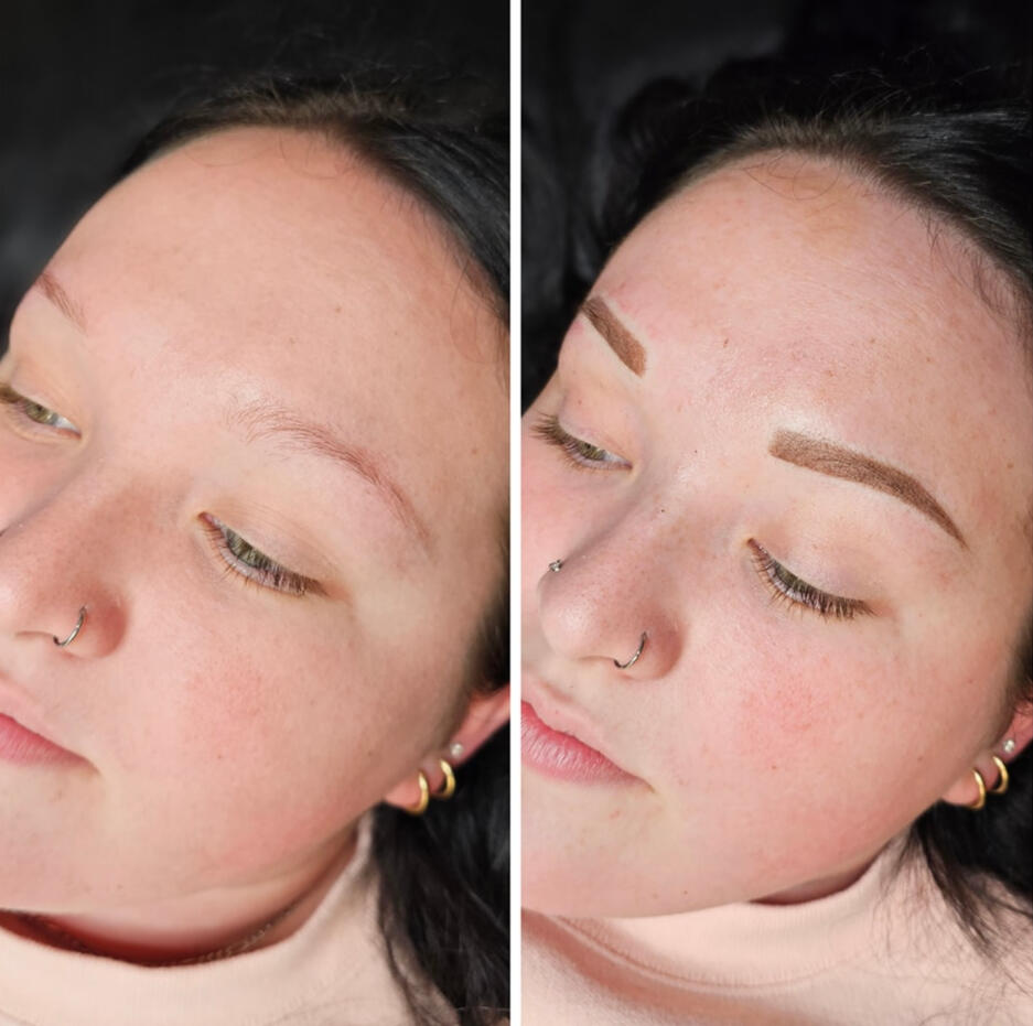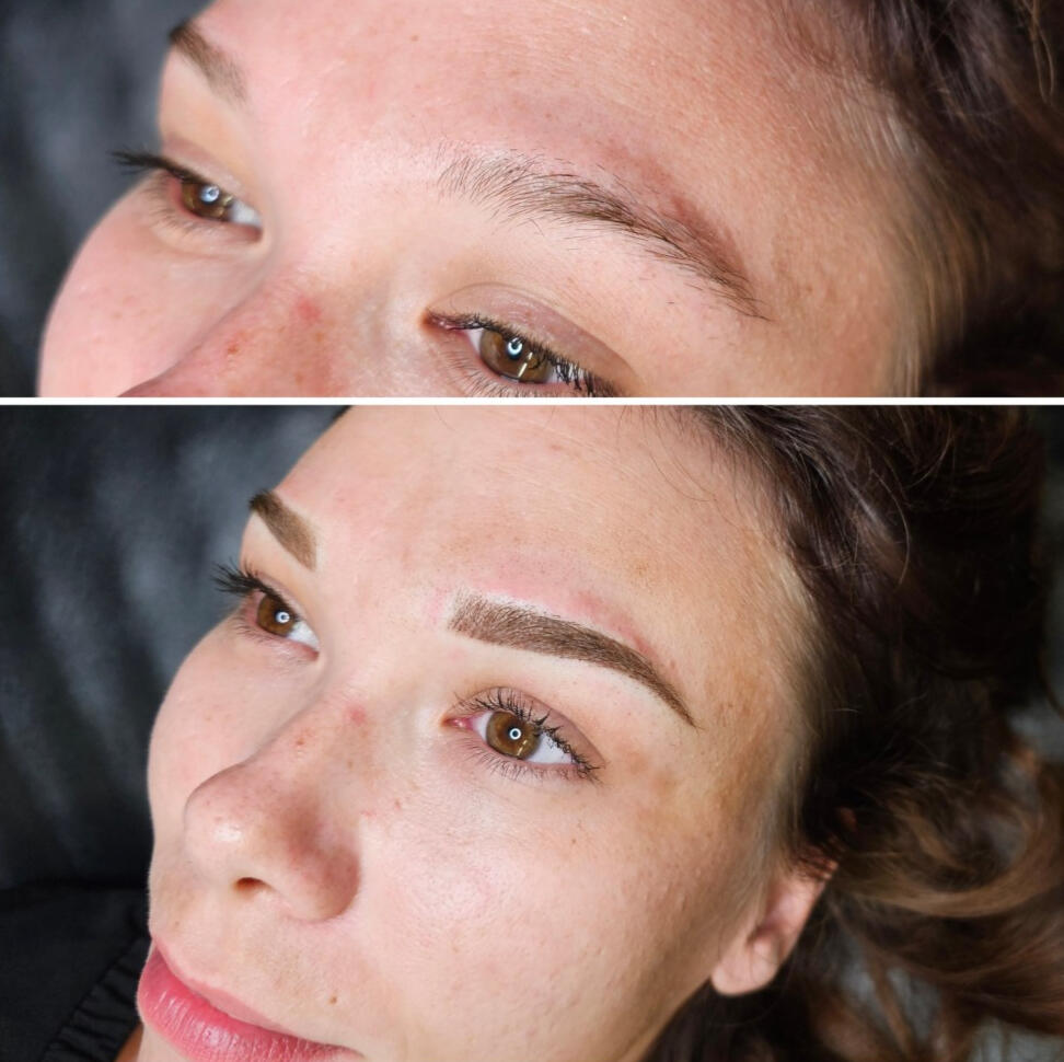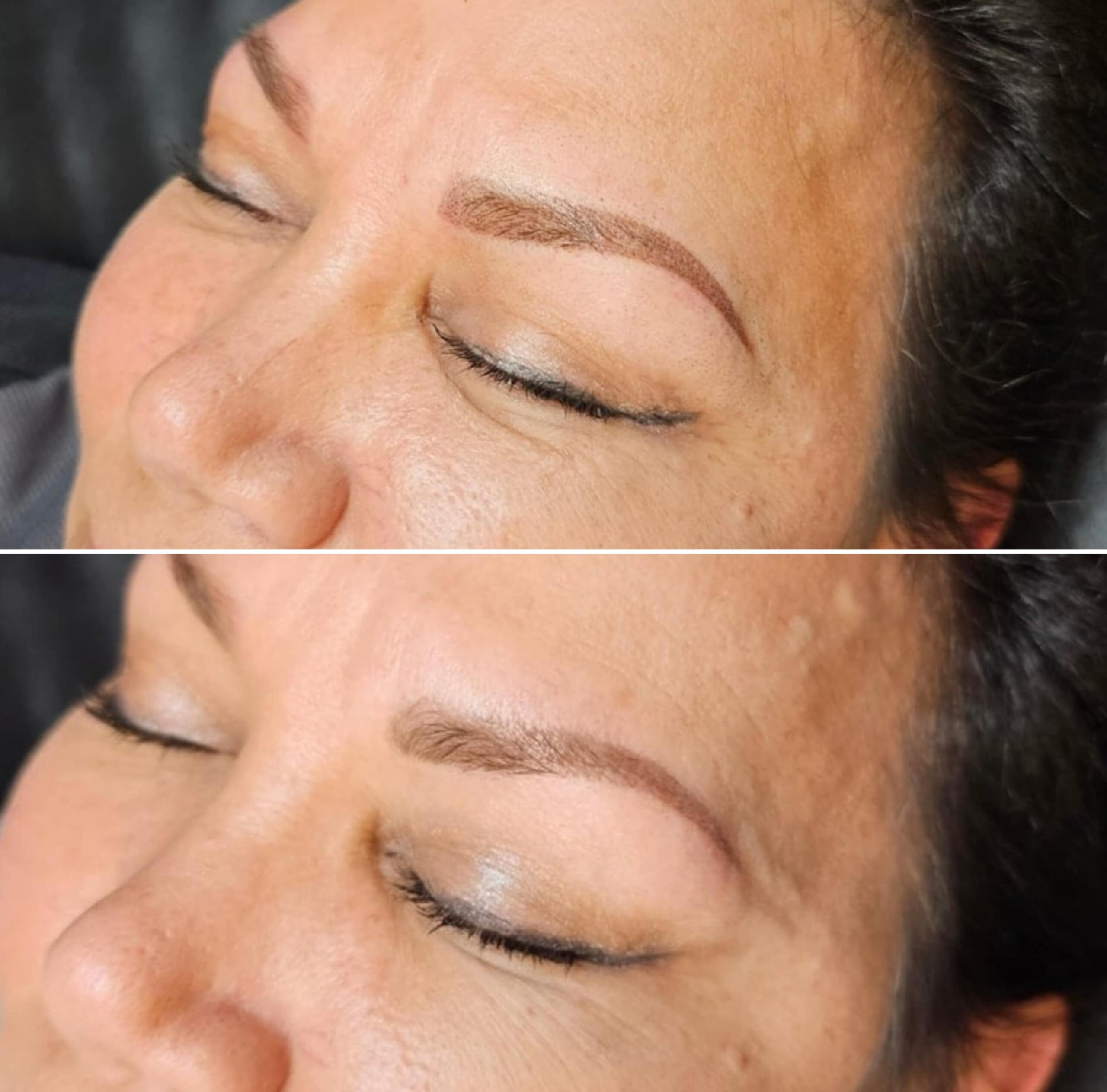 The first session creates the foundation; the second session perfects shape and color once healed.Brows are sisters, not twins.