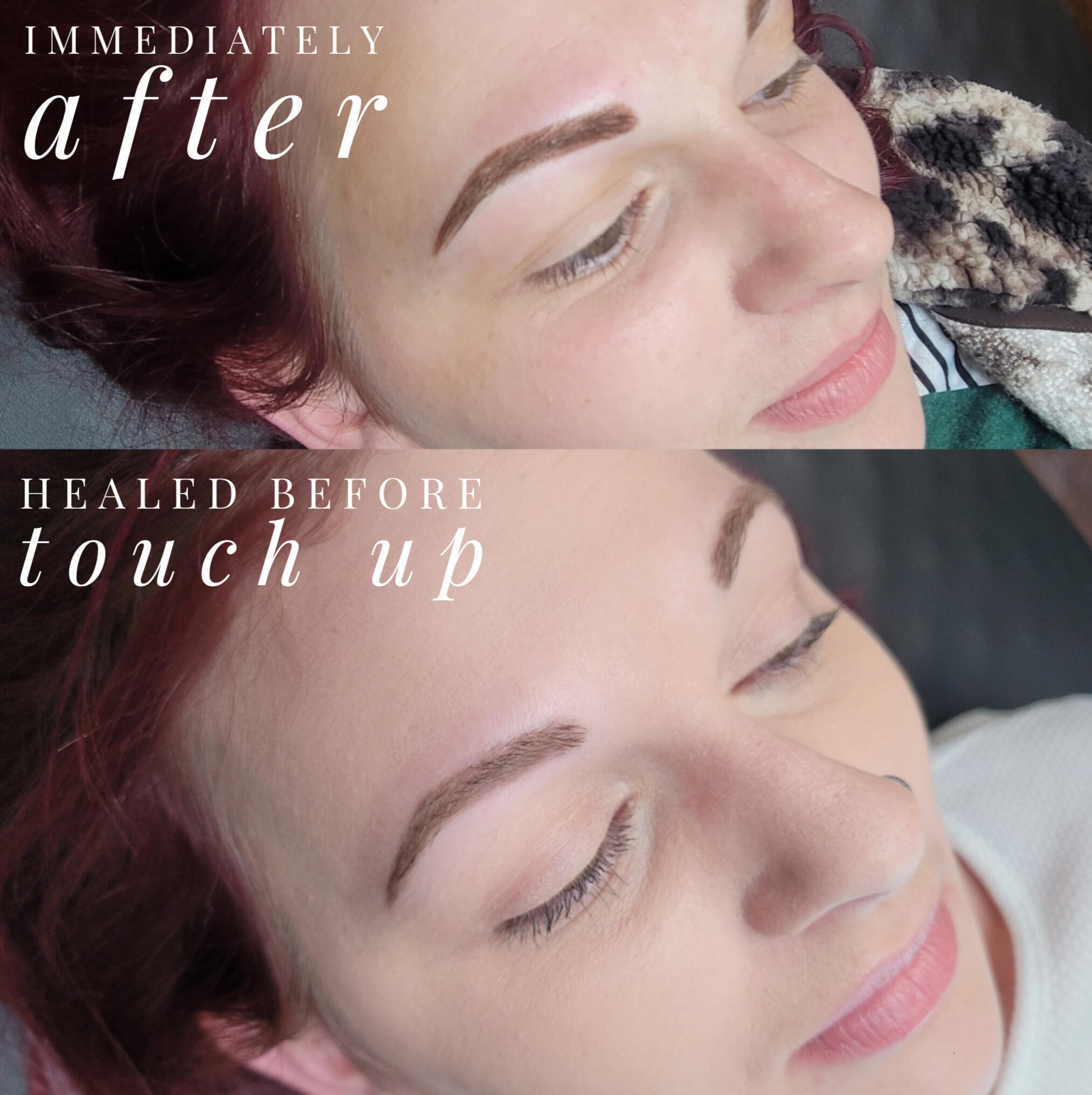 We start softer and build gradually so your brows heal naturally, look great longer, and age beautifully over time.Touch-ups are part of the process.
