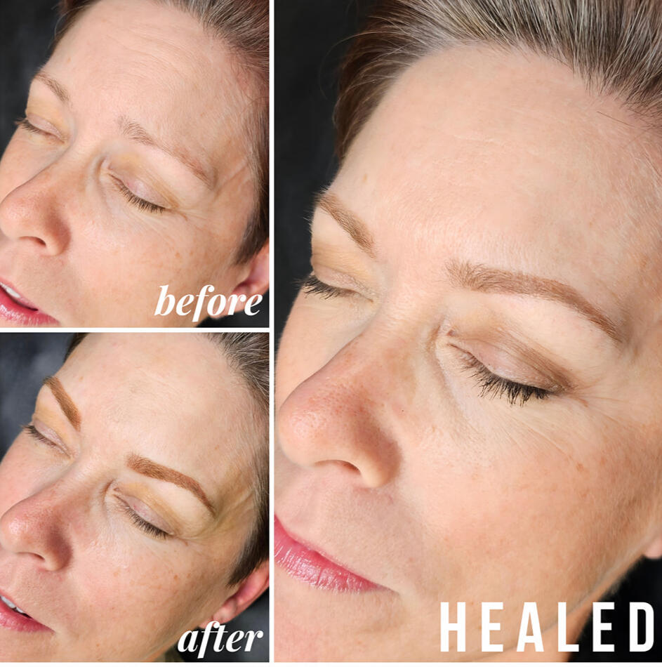 There’s always an “awkward phase” with a little flaking, patchiness, and itching. Don’t panic, don’t pick — just follow the aftercare instructions I give you.Results vary for everyone.